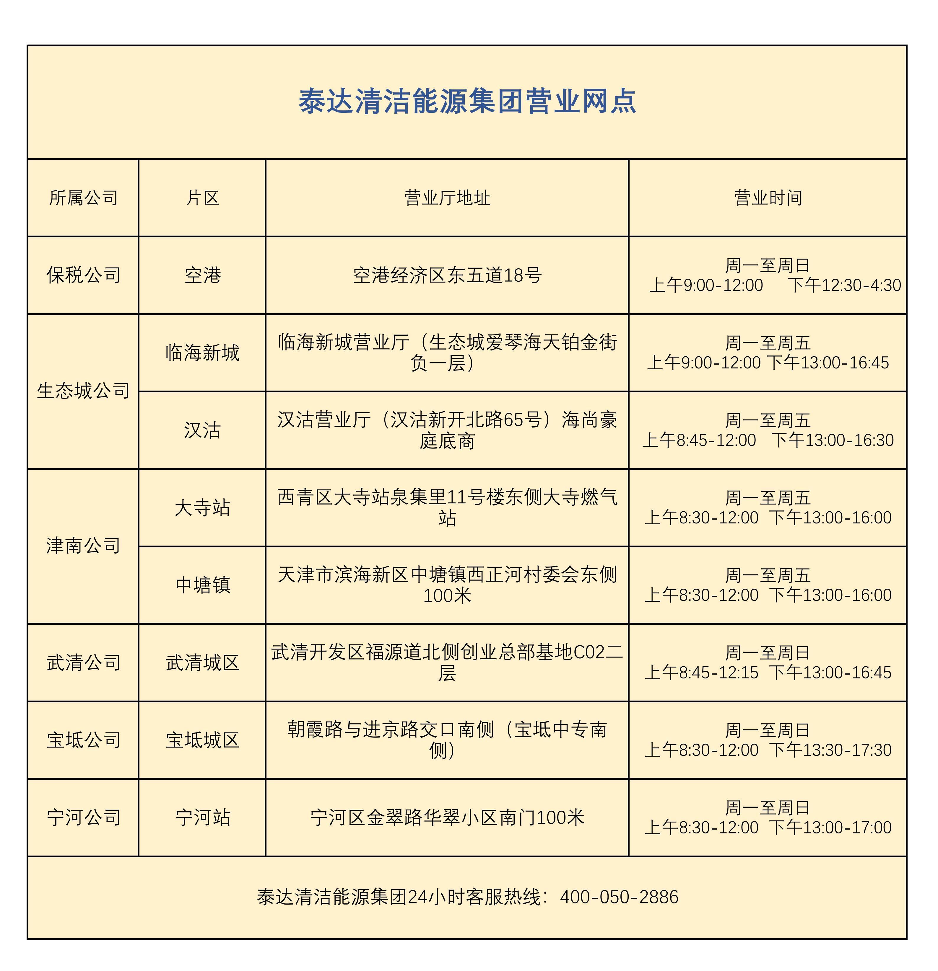 泰达清洁能源集团营业厅网点