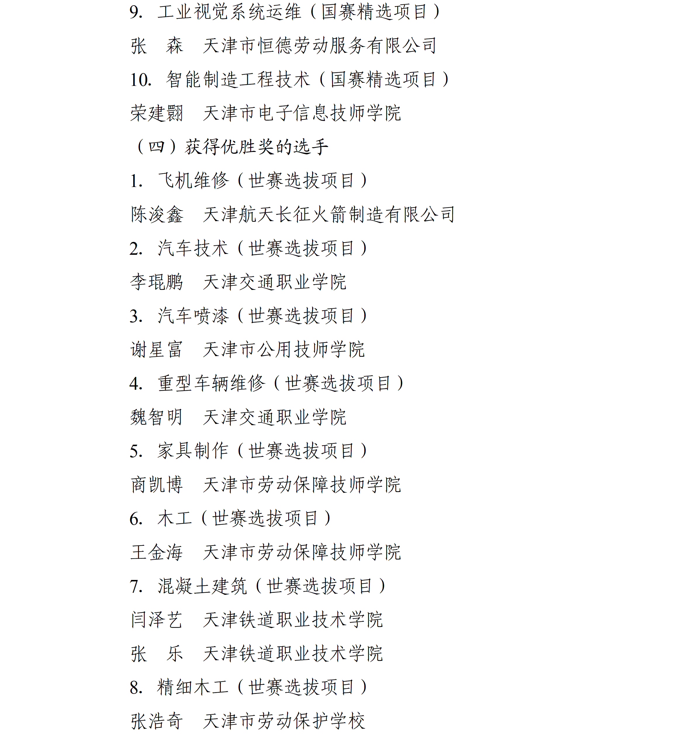 希望受表扬的个人和集体珍惜荣誉、再接再厉,充分发挥示范带头作用,做好技能技艺传帮带,推动竞赛成果转化为更多现实生产力,更好服务经济社会(hui) 高质量发展。希望广大企事业单位职工和院校师生以受表扬的个人和集体为榜样,进一步刻苦钻研、提高本领,走好技能成才、技能报国之路。各区、各部门、各单位要全面贯彻习近平总书(shu) 记关于做好新时代人才工作的重要思想,关于职业教育工作、技能人才工作的重要指示批示和视察天津重要讲话精神,深入实施科教兴市人才强市行动、制造业高质量发展行动,大力发展新技术、新产业、新业态、新模式,一体推进教育科技人才高质量发展,广泛开展职业技能竞赛,培养造就更多大国工匠、高技能人才,建设一流技术工人队伍,建好用好中国—上海合作组织职业技术教育合作中心,推动职业技能与人工智能双向赋能,为因地制宜发展新质生产力、加快建设现代化产业体系,奋力谱写中国式现代化天津篇章提供更坚实的技能人才保障和智力支撑。