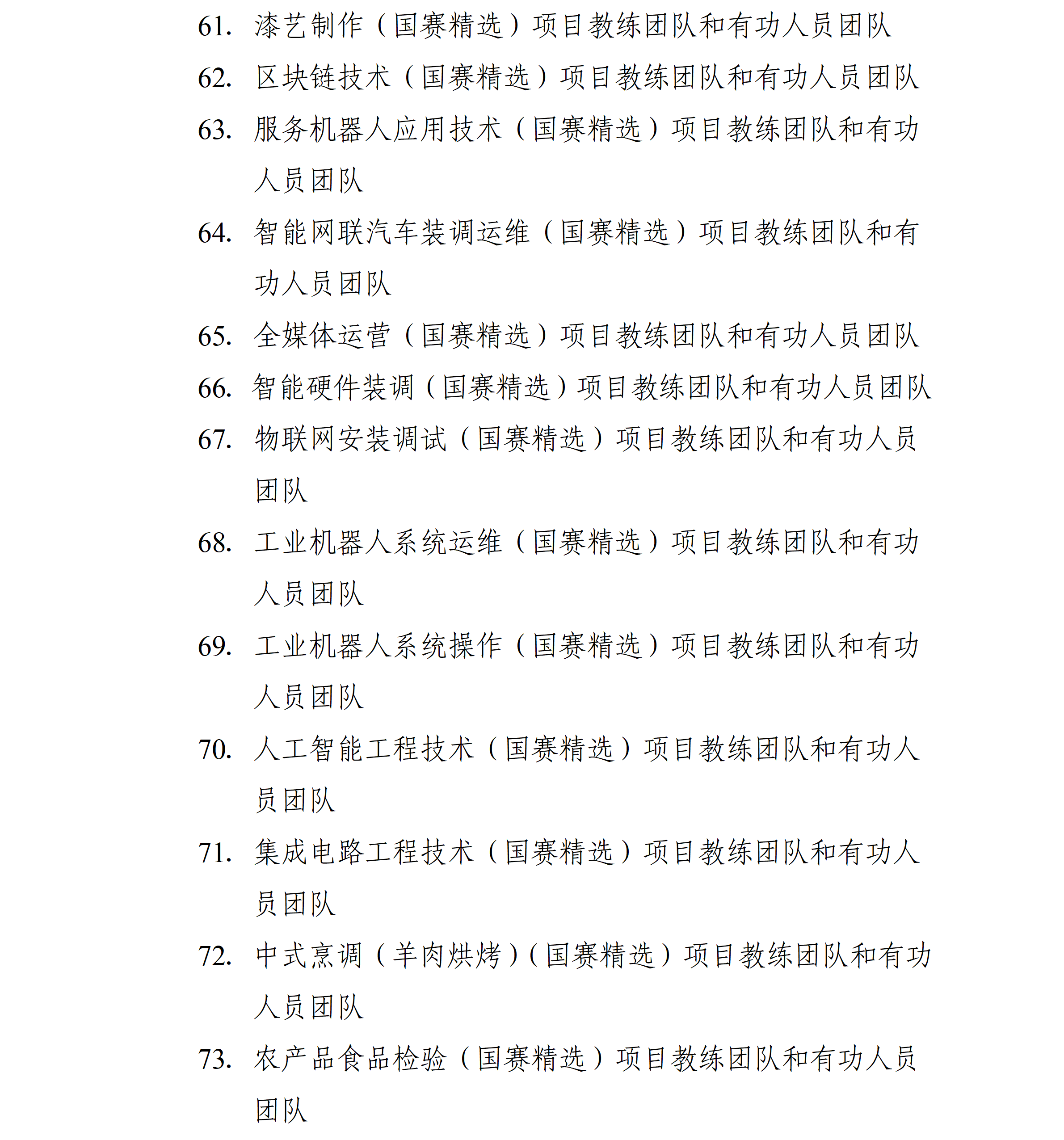 中华人民共和国第三届职业技能大赛于2025年9月19日至23日举办,本市派出116名选手参加全部106个赛项的角逐,4个项目摘得金牌、3个项目夺得银牌、10个项目获得铜牌,77个项目取得优胜奖,特别是“工业4.0”、“信息网络布线”等项目连续三届蝉联冠军。为大力弘扬劳模精神、劳动精神、工匠精神,动员激励本市广大劳动者特别是青年一代建功立业、创新创造,市人民政府决定对本市获奖选手、获奖项目教练团队和有功人员团队给予表扬和奖励,现通报如下: